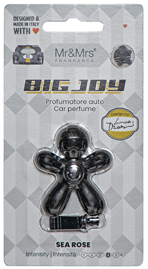 Vôňa do auta Big Joy Sea Rose Black prevonia vaše vozidlo až po dobu 2 mesiacov. Bojuje s nepríjemnými pachmi, ako je napríklad dym z cigariet, a príjemne osvieži vzduch. Panáčika stačí pripevniť na ventilátor klimatizácie vďaka úchytu, ktorý je súčasťou balenia.