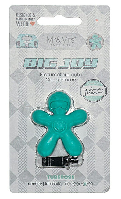 Kvetinová vôňa do auta Big Joy Tuberose Green prevonia vaše vozidlo až po dobu 2 mesiacov. Bojuje s nepríjemnými pachmi, ako je napríklad dym z cigariet, a príjemne osvieži vzduch.