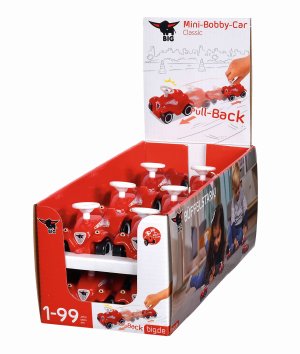 Kvalitný plastový miniatúrny model autíčka Big Mini Bobby Car Classic na spätný chod. V červenom prevedení. Karoséria, ráfiky, volant aj svetlá zodpovedajú originálu. 12 kusov v displeji. Dĺžka 7 cm. Rozmery: 7 x 45,5 x 5 cm.