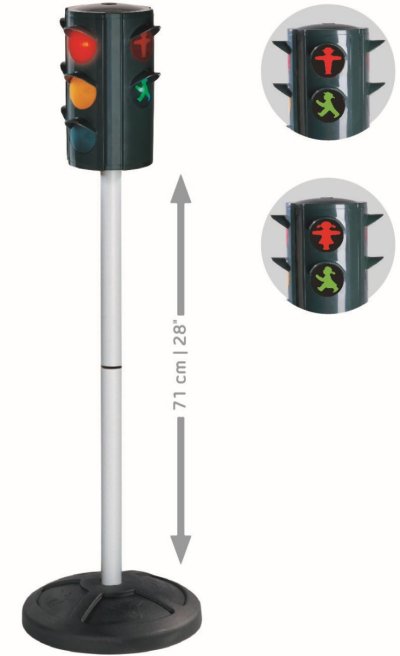 Semafor s automatickým alebo manuálnym prepínaním svetiel. Mení sa automaticky po 45 sekundovom cykle, automatická funkcia vypnutia po 30 minútach. Výška semaforu je 71 cm. Batérie nie sú súčasťou. Na vonkajšie aj vnútorné použitie.