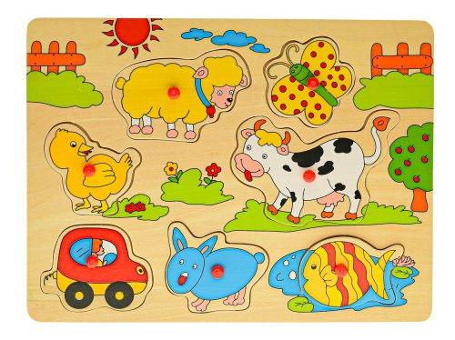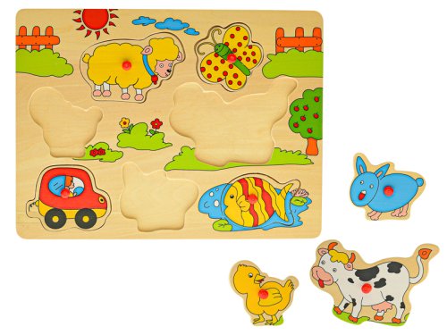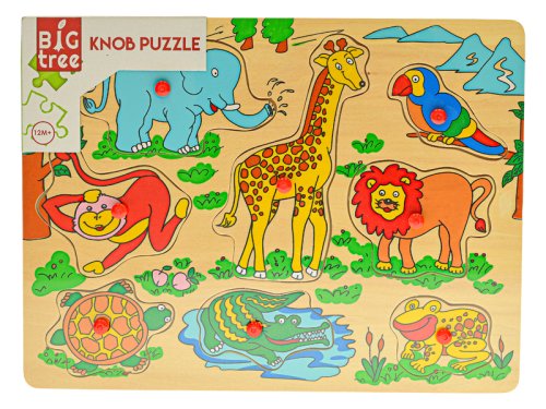 Drevená vkladačka z kolekcie Big Tree. Každý diel má na sebe úchyt pre jednoduchšiu manipuláciu. Deti sa naučia rozoznávať tvary a precvičia si jemnú motoriku. Vkladačka má rozmer 30x22,5 cm. Dostupné sú 3 druhy - zvieratká, farma, safari. Vhodné pre deti od 12 mesiacov.
