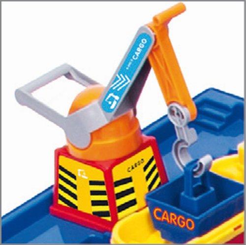 Big veľký vodný svet Amsterdam. Pomocou vodných zátarasov deti ovplyvňujú tok vody, a tým dávajú do pohybu rôzne lodičky a pod. Nechýba vodné koleso, nákladný prístav, 2 zásobníky na vodu s uzávermi a pumpou. Súčasťou sú 3 figúrky. Rozmery: 175 x 27 x 143 cm. Hmotnosť 6,2 kg.