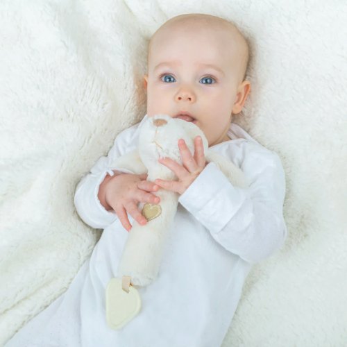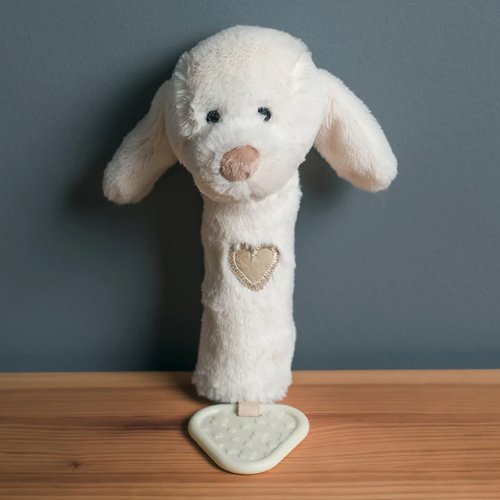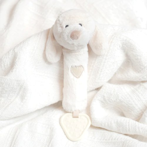 Hrkálka, pískatko a hryzátko v jednom. Tento super mäkký psík bol vyrobený za použitia mäkkých a bezpečných materiálov, ktoré sú láskavé k detskej pokožke. Hračka je designovaná tak, aby deťom pomohla pri rozvoji, bude perfektným darčekom pre novorodencov. Deti môžu uľaviť svojim ďasnám na robustnom hryzátku alebo hračku môžu stlačiť a ona zapíska! Hlavné vlastnosti: hračka má neutrálnu farbuperfektná veľkosť pre detské rukyvyrobené z kvalitných materiálov zo zodpovedných zdrojovsplňuje európske bezpečnostné štandardyvhodné už od narodenia