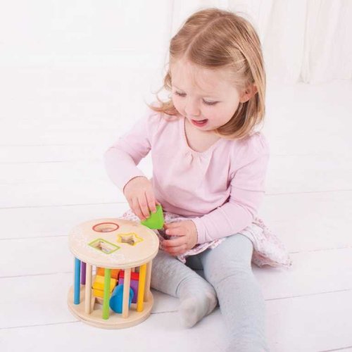 Veľmi obľúbená hračka u detí a batoliat. Tento valcovitý triedič nie je len šetrný k životnému prostrediu, je aj úplne bezpečný a pomáha vášmu dieťaťu sústrediť sa na konkrétne činnosti a úlohy. Úlohou je prestrčiť farebné tvary správnym otvorom. Ďalej potom môže byť hračka posielaná po podlahe, kedy vytvára skvelé klapavé zvuky. Vyrobené z vysoko kvalitných materiálov zo zodpovedných zdrojov. Hlavné vlastnosti: pomáha rozvíjať zručnosť a koordináciu