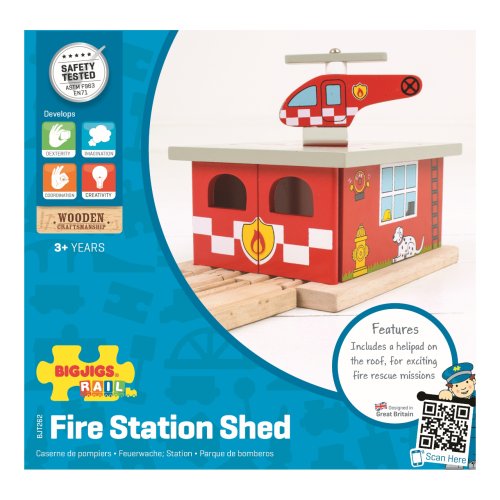 Toto depo je ideálne miesto odpočinku pre hasičský a záchranný vlak. Dodávané s vrtuľníkom. Hlavné vlastnosti: Vláčikodráhy a ich príslušenstvo značky Bigjigs Rail je možné kombinovať so všetkými ďalšími drevenými vláčikodráhami na trhu . Vyrobené z kvalitných a zodpovedne získaných prírodných materiálov. Zodpovedá súčasným európskym bezpečnostným normá m. Podporuje predstavivosť, obratnosť a koordináciu.