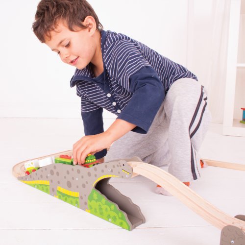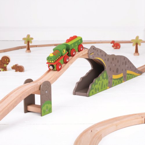 Fantasy dinosaurie príslušenstvo vláčikodráhy, v ktorom sa vzrušujúci svet železnice a prehistorické dinosaury doby spojili v jedno. Rovnako ako dinosaurus sa aj vláčik prebudil k životu, keď bude prechádzať na chrbte Brontosaura a rýchlo svišťal dole na druhú stranu! Vláčik nie je súčasťou balenia. Hlavné vlastnosti: vačkodráhy a ich príslušenstvo značky Bigjigs Rail je možné kombinovať so všetkými ďalšími drevenými vláčikodráhami na trhu vyrobené z kvalitných a zodpovedne získaných prírodných materiálov zodpovedá súčasným európskym bezpečnostným normám podporuje predstavivosť, obratnosť a koordináciu