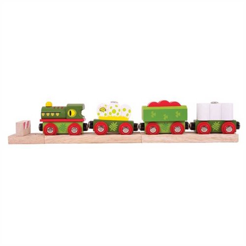 Súčasti balenia sú aj koľaje: 2ks stredná koľaj BJT101 a 1ks koncová koľaj BJT161! Deti budú milovať tento jasný a veselý set dinosaurieho vlaku, ktorý zahŕňa tri vagóniky, koľajnice a múdru lokomotívu. Magnetická spojka vagónikov tiež znamená, že môžu byť ľahko prepojené s ďalšími kusmi. Hlavné vlastnosti: vláčikodráhy a ich príslušenstvo značky Bigjigs Rail je možné kombinovať so všetkými ďalšími drevenými vláčikodráhami na trhu vyrobené z kvalitných a zodpovedne získaných prírodných materiálov zodpovedá súčasným európskym bezpečnostným normám podporuje predstavivosť, obratnosť a koordináciu