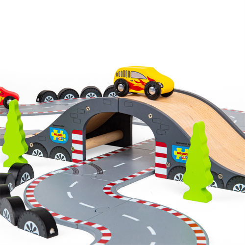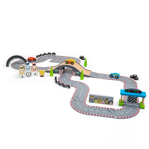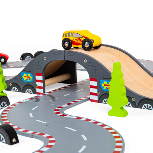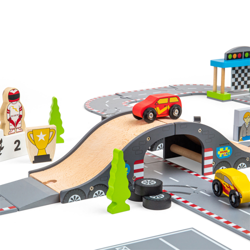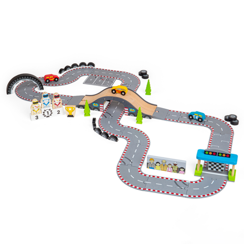 Pripraviť! Pozor! Štart! Táto fantastická drevená autodráha Závodný deň je ideálny darček pre každého malého pretekára, alebo pretekárku. Obsahuje množstvo drevených cestných dielov, 3 závodné autá, štart/cieľ a ďalšie príslušenstvo, čo umožňuje dostatok priestoru pre zábavnú a kreatívnu hru. Je možné ju použiť s ďalšími sadami Bigjigs Rail cestami a rozšíriť tak rozmanitosť herných aktivít. Je možné kombinovať aj so všetkými ostatnými drevenými cestnými sadami na trhu. Rozvíja koordináciu pohybov, jemnú motoriku, zručnosť a predstavivosť. Vyrobené z vysoko kvalitných, zodpovedne získaných materiálov. Spĺňa aktuálne európske bezpečnostné normy. Hlavné vlastnosti: 47 dielna drevená závodná dráha obsahuje 3 závodné autá, 3 jazdcov, pódium pre víťazov, hlavnú tribúnu, bariéry, semafory stromčeky, pohár pre víťazov, nadjazd a diely závodnej trate podporuje predstavivosť, obratnosť a koordináciu vhodné od 3 rokov.