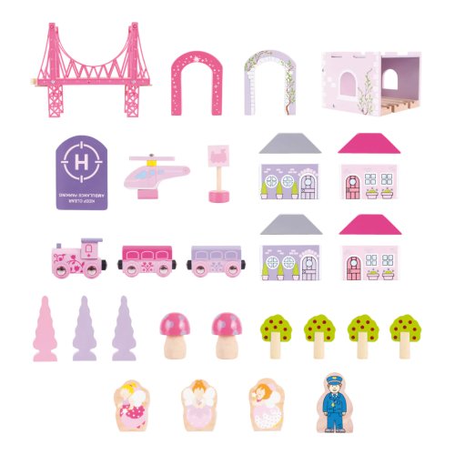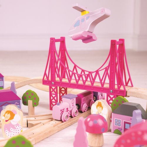 Originálna vláčikodráha nielen pre malé slečny so všetkým príslušenstvom, 75 kusov v odtieňoch ružovej a fialovej. Hlavné vlastnosti: vláčikodráhy a ich príslušenstvo značky Bigjigs Rail je možné kombinovať so všetkými ostatnými drevenými železničnými dráhami na trhu vyrobené z kvalitných a zodpovedne získaných prírodných materiálov zodpovedá súčasným európskym bezpečnostným normám podporuje predstavivosť, obratnosť a koordináciu