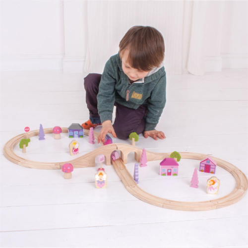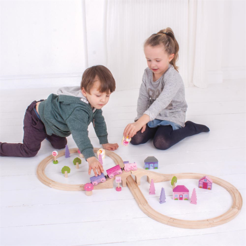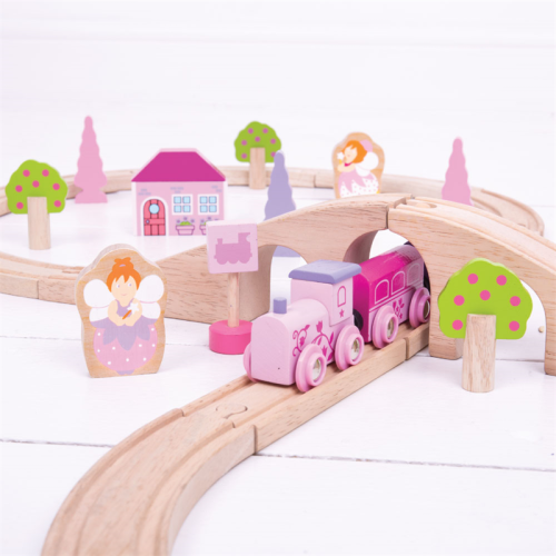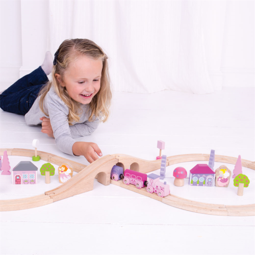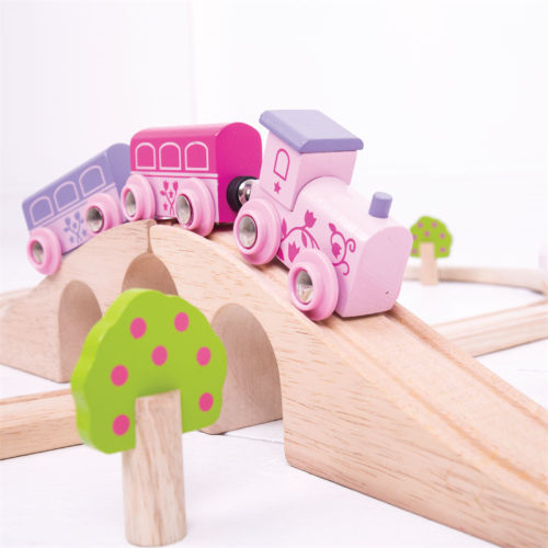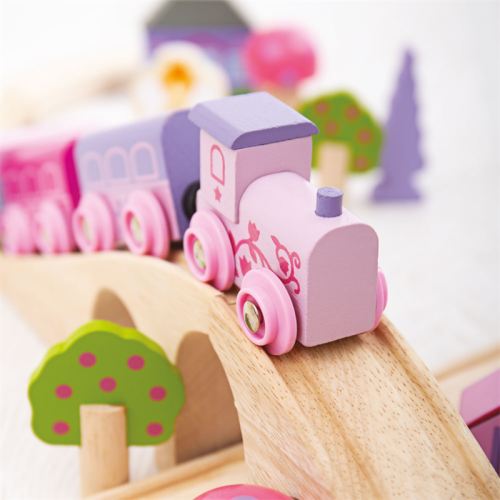 Originálna vláčikodráha pre malé slečny s kompletným príslušenstvom v dievčenských farbách .