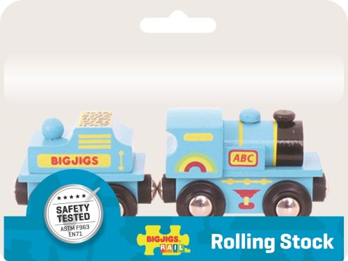 Súčasťou balenia sú aj koľaje: 1ks krátka koľaj BJT101 a 1ks koncová koľaj BJT161! Táto veselá a tradičná modrá lokomotíva s tendrem má magnetické spojky, takže deti môžu ľahko vytvárať svoju zbierku ťahacích mašiniek! Hlavné vlastnosti: Vláčikodráhy a ich príslušenstvo značky Bigjigs Rail je možné kombinovať so všetkými ďalšími drevenými vláčikodráhami na trhu . Vyrobené z kvalitných a zodpovedne získaných prírodných materiálov. Zodpovedá súčasným európskym bezpečnostným normám. Podporuje predstavivosť, obratnosť a koordináciu.