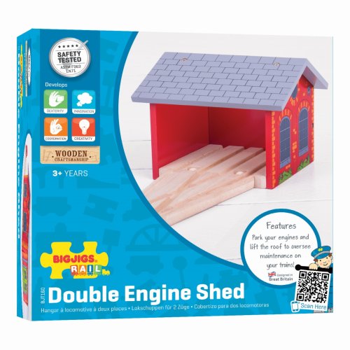 Drevené železničné depo pre 2 vláčiky vrátane vjazdovej koľaje. Kompaktné a dobre navrhnuté depo má schopnosť uložiť až 2 vlaky. Skvelý doplnok drevenej vláčikodráhy ak máte v danom okamihu prebytok vašich vláčikov alebo ak ich len potrebujete nechať oddýchnuť alebo natankovať . súčasným európskym bezpečnostným normám podporuje predstavivosť, obratnosť a koordináciu