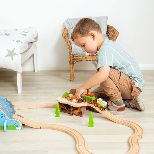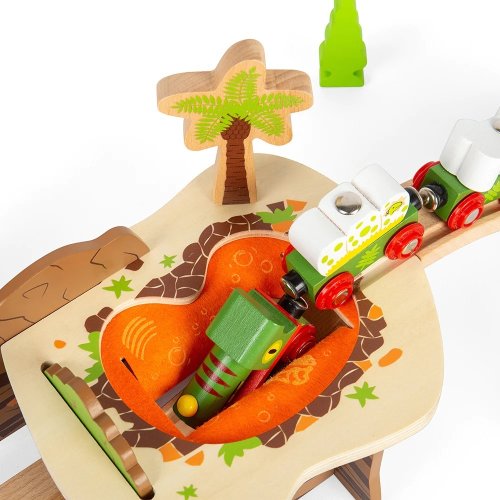 Tunel vláčikodráhy ako lávová jama! Prežije vlak detí túto plstenú lávu? Obsahuje aj palmu a krásne prehistorické ilustrácie. Predstavivá hra pomôže s rozvojom kreativity, sociálnych zručností a rozvoja reči. Perfektne sa bude hodiť do dinosaurie vláčikodráhy . Vláčikodráhy a ich príslušenstvo značky Bigjigs Rail je možné kombinovať so všetkými ďalšími drevenými vláčikodráhami na trhu. Vyrobené z vysoko kvalitných materiálov zo zodpovedných zdrojov. Zodpovedá európskym bezpečnostným štandardom . Hlavné vlastnosti: drevený most lávová jamaplstená lávastúpajúci/klesajúci koľaj a rampakompatibilná s vláčikodráhami Bigjigs Toy