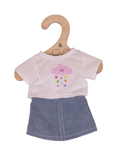 Nastávajúcu módnu guru si zamilujú našu kolekciu oblečenia pre bábiky, vrátane tohto bieleho trička a džínsové sukne pre 28cm bábiky. Či už Vaše dieťatko berie svoju bábiku na párty alebo samo organizuje čajový večierok, obliecť sa pre tieto príležitosti nebolo nikdy jednoduchšie. Všetky naše bábiky inšpirujú kreatívne hranie a rozvíja u detí zmysel pre priateľstvo a súdržnosť. Vyrobené z kvalitných materiálov zo zodpovedných zdrojov. Zodpovedá európskej bezbečnostnej norme. Hlavné vlastnosti: vhodné pre bábiky o veľkosti 28 cm trénuje motoriku hravou formou vrátane vešiačika