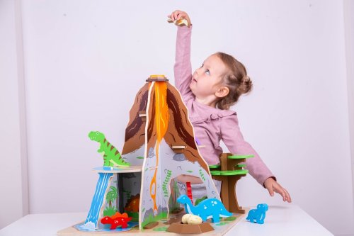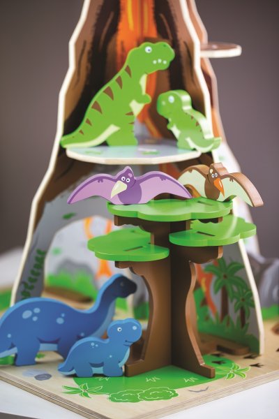 Vráťte sa späť do čias, keď dinosaury vládli Zem. Hracia sada Ostrov dinosaurov obsahuje 8 dinosaurov, hniezdo a 2 vajcia, vodopád a voľne stojaci strom. Stromom sa dá pohybovať. Z dinosaurov na deti čaká okrem iného veľký Brontosaurus s mláďaťom a tiež 2 Pterodaktylové. Schovajte sa za vodopádom, vylezte na sopku alebo balansujte na skalnej rímse, ale pozor na lávu! Táto sada deti naučí niečo o dinosauroch a čase, keď žili. Jednoducho zložte drevené dieliky do seba a prehistorická krajina je pripravená na hranie. Ostrov dinosaurov pomáha a rozvíja zručnosť, predstavivosť, sociálne zručnosti a koordináciu detí. Obsahuje 13 hracích dielikov. Vyrobené z kvalitných materiálov zo zodpovedných zdrojov. Hlavné vlastnosti: 13 hracích dielov 8 dinosaurov (Brontosaurus s mláďaťom, 2 Pterodaktylové a ďalšie)hniezdo2 vajciavodopád strom, ktorým sa dá pohybovať jednoduché zloženierozvíja zručnosť, predstavivosť a učenie detí o dinosauroch a čase, v ktorom žili