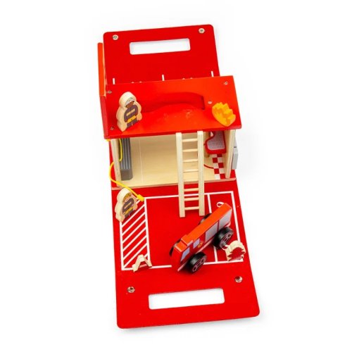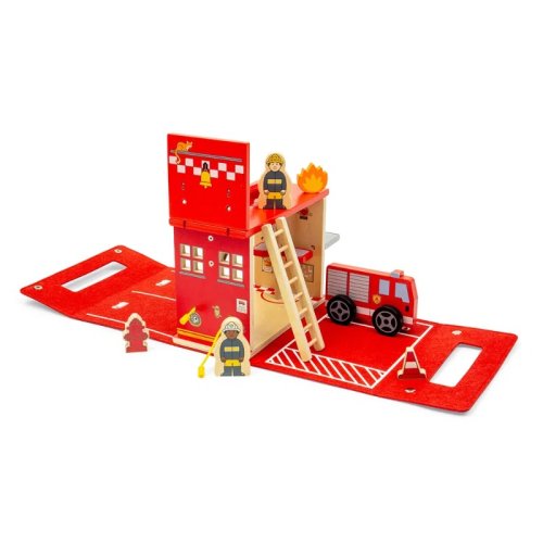 Vydajte sa na záchrannú misiu kedykoľvek a kdekoľvek! Táto kompaktná hasičská stanica je súčasťou kolekcie prenosných herných súprav a vďaka skladacím plsteným bokom sa ľahko zbalí i prenáša. Súprava ponúka všetko, čo malý hasič potrebuje pre dobrodružnú hru na cestách. Deti si môžu prehrávať napínavé záchranné akcie s hasičským autom, dvoma figúrkami hasičov a ďalšími doplnkami. Drevená stanica zároveň slúži ako praktický úložný box i herný priestor. Nechýba ani rebrík, hadica, bezpečnostný kužeľ a požiarny hydrant, ktoré rozširujú možnosti kreatívneho rozprávania. Hra podporuje rozvoj fantázie, komunikačných zručností i sociálnej interakcie pri spoločnom hraní. Vďaka kompaktnému vyhotoveniu, ľahkému upratovaniu a pevnej rukoväti je súprava ideálna na cesty, dovolenku i návštevy. Vyrobené z kvalitného FSC® certifikovaného dreva z udržateľných zdrojov. Súprava je odolná, bezpečná a dodáva sa v 100% recyklovateľnom balení bez plastov – skvelá voľba pre ekologicky zmýšľajúce rodiny. Hlavné vlastnosti: prenosná drevená herná súprava so skladacími plstenými bokmiobsahuje 8 dielov: hasičské auto, 2 figúrky hasičov, rebrík, hadicu, kužeľ a hydrantdrevená stanica slúži aj ako úložný boxpraktická rukoväť na ľahké prenášaniepodporuje kreativitu, fantáziu a sociálne zručnostivyrobené z FSC® certifikovaného dreva100% recyklovateľné balenie bez plastovvhodné pre deti od 2 rokov Značka a certifikát FSC® (Forest Stewardship Council) zaručuje, že drevo, z ktorého bol produkt vyrobený, nebolo vyťažené nelegálne a pochádza z lesov obhospodarovaných šetrným či prírode blízkym spôsobom, v ktorom sú dodržiavané prísne environmentálne a sociálne požiadavky. Značka FSC® na produkte znamená, že svojim nákupom pomáhate chrániť lesy a podporujete šetrné, zodpovedné či prírode blízke hospodárenie, vďaka ktorému sú naše lesy stabilnejšie, zdravšie, majú prirodzenú druhú skladbu a lepšie odolávajú negatívnym následkom klimatických zmien.