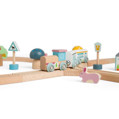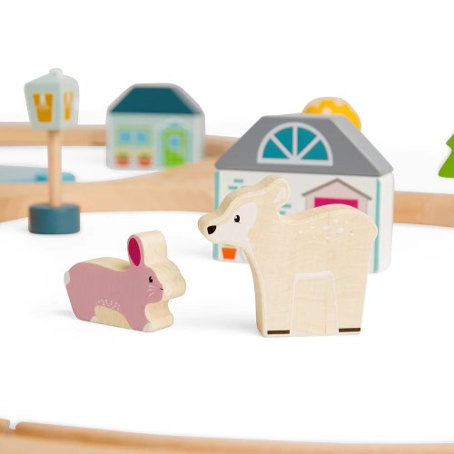 Preskúmajte zázraky lesa s touto krásnou drevenou vláčikodráhou. Táto vláčikodráha má tvar osmičky. Deti budú pri svojej jazde prechádzať okolo muchotrávok, borovíc a rozkošných lesných zvieratiek, ale aj okolo kaviarne alebo pekárne. Je vyrobená z vysoko kvalitného, udržateľne ťaženého dreva s certifikáciou FSC®. Spĺňa aktuálne európske bezpečnostné normy. Dodávané vrátane lesných zvierat, budov a stromov. Hlavné vlastnosti: vyrobené eticky z udržateľného dreva s certifikáciou FSC® zodpovedá súčasným európskym bezpečnostným normám podporuje predstavivosť, obratnosť a koordináciu kompatibilnú s vláčikodráhami ďalších výrobcov vrátane lesných zvierat, budov a stromov atraktívne spracovanie Značka a certifikát FSC® (Forest Stewardship Council) zaručuje, že drevo, bol produkt vyrobený, nebolo vyťažené nelegálne a pochádza z lesov obhospodarovaných šetrným či prírode blízkym spôsobom, v ktorom sú dodržiavané prísne environmentálne a sociálne požiadavky. Značka FSC® na výrobku znamená, že svojim nákupom pomáhate chrániť lesy a podporujete šetrné, zodpovedné či prírode blízke hospodárenie, vďaka ktorému sú naše lesy stabilnejšie, zdravšie, majú prirodzenú druhovú skladbu a lepšie odolávajú negatívnym následkom klimatických zmien.