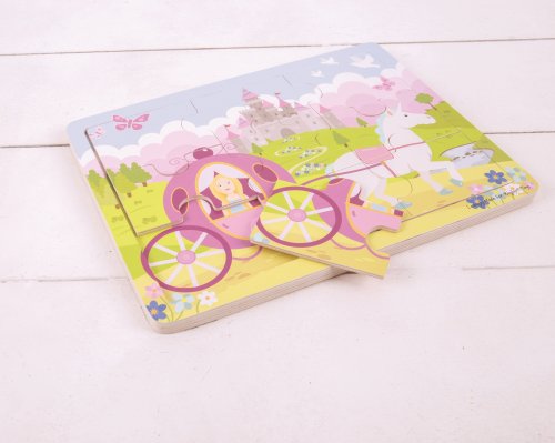 Vtedy... V krajine za siedmimi horami a siedmimi riekami žila krásna princezná v začarovanom zámku a dnes sa vo svojom kočiari vydáva za dobrodružstvom! Deti budú skutočne rady skladať toto drevené puzzle a sledovať, ako sa magická scéna rysuje. Toto krásne navrhnuté puzzle je skvelý spôsob, ako rozvíjať predstavivosť a zlepšovať logické myslenie. Akonáhle bude umiestnený posledný diel, deti pocítia pocit úspechu. Každý veľký dielik skladačky je veľkoryso dimenzovaný pre malé ručičky, aby ich mohlo zdvíhať, uchopovať, skúmať a vymieňať. Skvelý spôsob, ako podporiť rozvoj reči, keď deti hovoria o tom, čo sa deje na rušnej scéne. Vyrobené z vysoko kvalitných, zodpovedne získaných materiálov. Spĺňa aktuálne európske bezpečnostné normy. Obsahuje 9 dielikov puzzle. Hlavné vlastnosti: obsahuje 9 dielikov pomáha rozvíjať predstavivosť a zlepšovať logické myslenie veľké dieliky puzzle