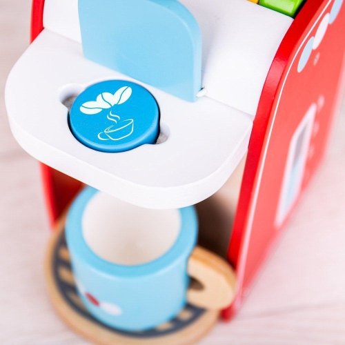 Kávovar pre vaše milé deti - presne taký, aký používajú mama s otcom. Ideálne pre realistickú hru. Umiestnite kávovú kapsulu do kávovaru a otočte spínačom na prípravu dokonalej šálky kávy. Táto realistická herná sada obsahuje 4 drevené kávové kapsule, kávovar, hrnček a škatuľu mlieka. Podporuje kreatívne a nápadité hranie rolí. Vyrobené z vysoko kvalitných, zodpovedne získaných materiálov. Spĺňa aktuálne európske bezpečnostné normy. Hlavné vlastnosti: ideálna pre realistickú hrusada obsahuje 4 drevené kávové kapsule, kávovar, hrnček a krabici mlieka podporuje kreativitu