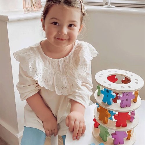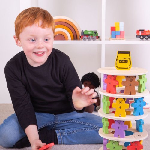 Kto zhodí pohár medu ako prvý? Postavte za pomoci medvedíkov veža. Hoďte si kockou, ktorá určí farbu medveďa, na prvý drevený kruh postavte 6 medveďov a potom na ne položte ďalší drevený kruh. Tento postup opakujte. Ale pozor, nech vám medvedia veža nespadne! Vyrobené z kvalitných materiálov zo zodpovedných zdrojov. Spĺňa európske bezpečnostné štandardy. Vhodné od 3 rokov. Hlavné vlastnosti: 6 medzikruží a veko, 36 figúr medveďov, figúra džbánu a kockarobustné a odolné prevedenievyrobené s ohľadom na udržateľnosť