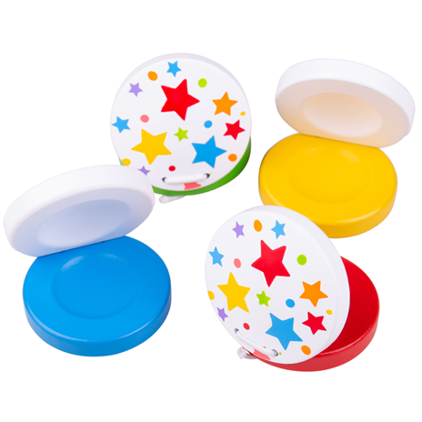 Cena je uvedená za 1 kus. Tieto drevené, farebné kastanety s hviezdičkami sú perfektné pre úvod do sveta hudby. Deti sa s nimi naučia zvuku a rytmu a kastanety ich tiež podporia v kreativite. Pomáhajú rozvinúť zručnosť a koordináciu detí. Vyrobené z kvalitných materiálov zo zodpovedných zdrojov. Zodpovedá európskej bezbečnostnej norme. Hlavné vlastnosti: rozvíja jemnú motoriku a kreativituhravý úvod do sveta zvuku a rytmuvyrobené z dreva a kovu