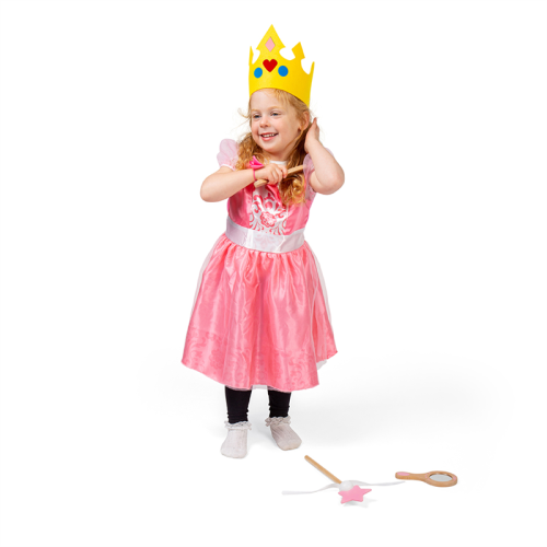 Perfektný kostým ružové šaty so sieťovanými rukávmi pre malé princezné. Možnosti predstieranej hry sú nekonečné. Testované podľa najnovších predpisov EN71 a REACH. Hlavné vlastnosti: príslušenstvo: korunka, zrkadlo, hrebeň, rukavice, kúzelná paličkavhodné pre deti od 3 do 4 rokovnápadité a detailné spracovanie