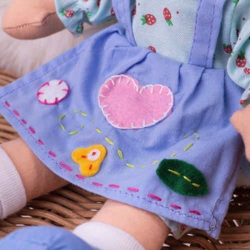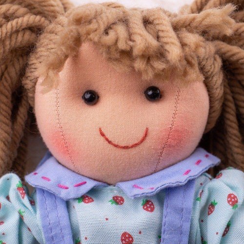 Zoznámte sa s Grace - veselou, farebnou, látkovou bábikou, s ktorou sa Vaše dieťa bude určite rado hrať. Bábika je oblečená do kvalitného oblečenia v peknom, bledomodrom prevedení so vzorom červených jahôdok. Mäkké látkové bábiky sú skvelým spôsobom, ako podporiť kreatívne hranie. Hlavné vlastnosti: bezpečné mäkké telíčkohra s bábikou rozvíja jemnú motoriku a schopnosť pomáhať, starať sa o bábiku Bigjigs Toys možno dokupovať oblečenie v príslušnej veľkosti vhodné už od narodenia zodpovedá súčasným európskym bezpečnostným normám