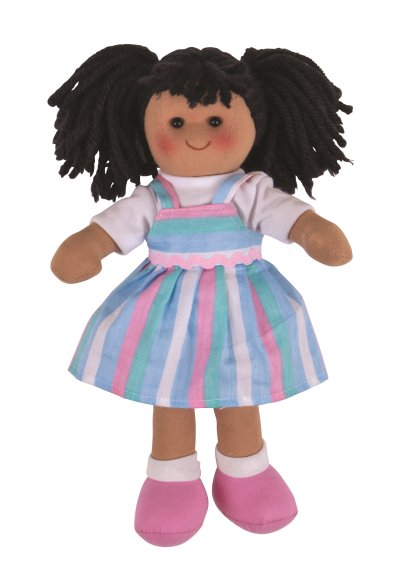 Zoznámte sa s veselou Kirou, farebnou a tradičnou bábikou, s ktorou sa vaše dieťa rado pomazná. Kira nosí kvalitné oblečenie v peknom farebnom prevedení a teší sa na spoločné priateľstvo s deťmi. Oblečenie je možné vyzliekať a obliekať bábike podľa potreby . Hlavné vlastnosti: bezpečné mäkké telíčkohra s bábikou rozvíja jemnú motoriku a schopnosť pomáhať, opatrovať bábike Bigjigs Toys možno dokupovať oblečenie v príslušnej veľkosti vhodné už od narodenia zodpovedá súčasným európskym bezpečnostným normám