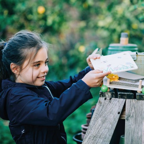 Pomôcka pre kreatívne deti, ktoré si túžia založiť herbár, vytvárať originálne dekorácie, alebo pamiatky. Nechajte deti nadviazať na dlhú tradíciu lisovania, zbierať obľúbené kvety, alebo najfarebnejšie jesenné lístie a uchovávať ich krásu vo vlastnoručných umeleckých dielach. Lis je na vrchnej strane dekorovaný roztomilou farebnou ilustráciou s motívom záhradky a jeho matice sú vyvedené v atraktívnej, jasne zelenej farbe. Drevené skrutkové lisy sú obzvlášť robustné a odolné. Na výrobu boli použité výhradne kvalitné, zodpovedne získané materiály a nezávadné farby. Hlavné vlastnosti: 2 dosky, 4 skrutky a 4 matica výtvarná i prírodopisná pomôcka atraktívne a robustné spracovanie