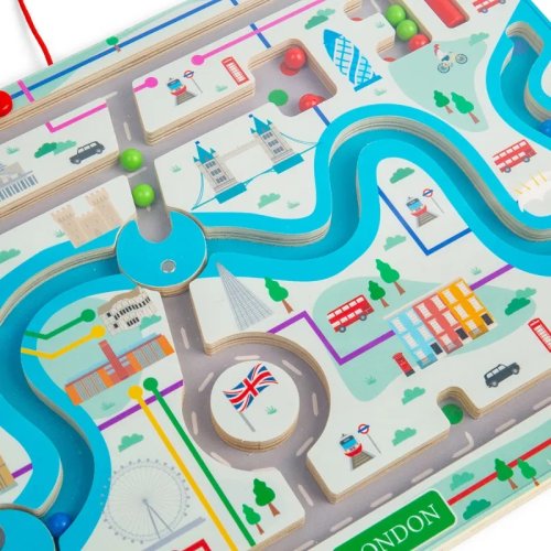 Vydajte sa na prechádzku rušnými ulicami Londýna s magnetickým bludiskom! Pomocou červeného magnetického pera môžu deti viesť 15 magnetických guličiek bludiskom. Poznajú ikonické pamiatky, ako je Buckinghamský palác, London Eye a Tower Bridge, alebo sa môžu vydať na prechádzku po rieke Temžu a otáčaním magnetických koliesok prepínať, kadiaľ budú pokračovať ďalej. Každé otočenie kolieska a výber ďalšej cesty pomôže deťom pracovať na ich schopnostiach riešiť problémy a dostať sa do požadovaného cieľa. Použitie magnetického pera tiež zlepší zručnosť a koordináciu ruka-oko a sústredenia. Magnetické bludisko je vyrobené z prvotriedneho a udržateľného dreva s certifikáciou FSC® a nafarbené netoxickými farbami a lakmi. Spĺňa aktuálne európske bezpečnostné normy. Hlavné vlastnosti: zlepšuje jemnú motoriku a koordináciu ruka-okoučí deti riešiť problémyvyrobené z dreva s certifikáciou FSC®vhodné od 3 rokov veku . Značka FSC® na výrobku znamená, že svojim nákupom pomáhate chrániť lesy a podporujete šetrné, zodpovedné či prírode blízke hospodárenie, vďaka ktorému sú naše lesy stabilnejšie, zdravšie, majú prirodzenú druhovú skladbu a lepšie odolávajú negatívnym následkom klimatických zmien.