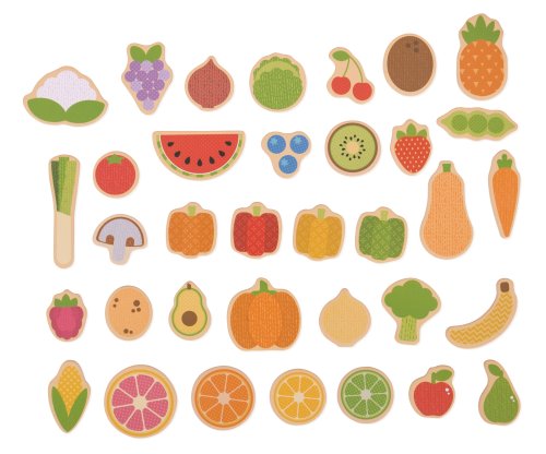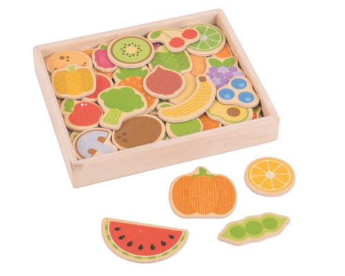 Tieto farebné magnetky sú vyrobené z dreva, zadná strana je magnetická. Podporí deti v kreatívnom rozprávaní vlastných príbehov. Táto sada obsahuje 35 ks magnetov – melón, čerešne, ananás, pór, brokolicu, cibuľu, huby, hrozno a ďalšie! Ideálne ako doplnok k magnetickým tabuliam alebo ako dekorácia chladničky. Zabalené v pevnej drevenej krabičke. Hračka pomáha s rozvojom zručnosti a sústredenia. Vyrobené z kvalitných materiálov zo zodpovedných zdrojov. Zodpovedá európskym bezpečnostným štandardom . Hlavné vlastnosti: možno využiť k magnetickým tabuliam alebo vykúzlia zaujímavé obrázky na chladničke balené v drevenej krabičke pomáhajú rozvíjať obratnosť a koncentráciu vyrobené z vysoko kvalitných materiálov zodpovedá súčasným európskym bezpečnostným normám