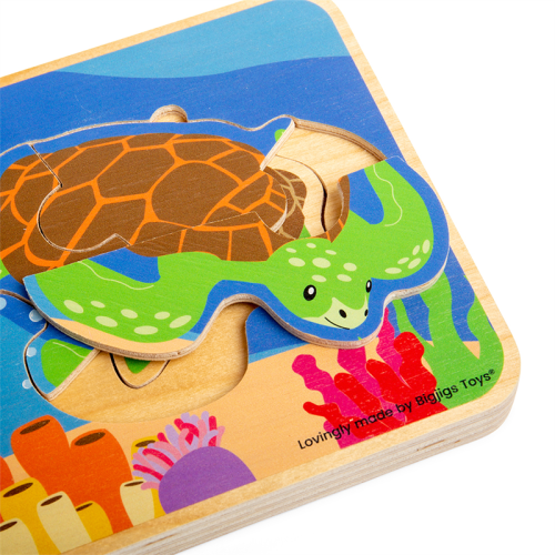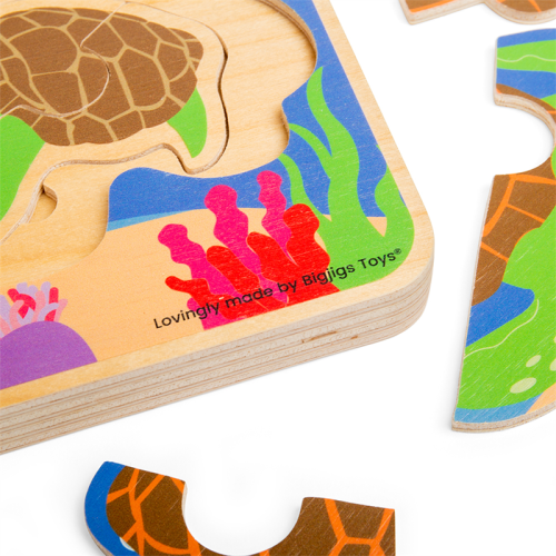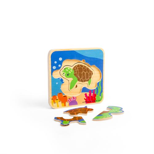 Drevené puzzle, ktoré deťom ukáže životný cyklus korytnačky od vajíčka až do dospelosti. Stačí odstrániť všetky puzzle až na začiatok životnej etapy korytnačky. Potom sa postupne vkladajú jednotlivé dieliky podľa veľkosti. Zakaždým sa objavuje korytnačka o niečo staršia, až do dospelosti. Deti sa pritom naučia niečo nové o zvieracej ríši. Pomáha rozvíjať jemnú motoriku a sústredenie. Vhodné na doma aj na cesty. Stavať ho môžu deti od roku a pol . Hlavné vlastnosti: vyrobené z vysoko kvalitných, zodpovedne získaných materiálov zodpovedá súčasným európskym bezpečnostným normám krásne farebné spracovanie vek: 1,5+