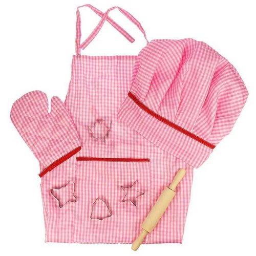 Mladí kuchári/ky budú milovať túto svetlú a pekne ružovú bavlnenú sadu na pečenie alebo varenie, ktorá obsahuje zásteru, chňapku, kuchársku čiapku, valček a vykrajovače. Ideálne pre použitie v asistovanom varení alebo pečení, alebo pre použitie v našom drevenom kuchynskom sortimente ako súčasť hracích rolí, ktoré si vaše dieťa určite rado stvárni. V našej ponuke je set k dispozícii aj v modrej farbe tu. Súčasťou balenia je všetko podľa obrázku. Hlavné vlastnosti: čiapka: zapínanie na suchý zips, obvod cca 47-51 cmrukavice: dĺžka 17 cmzásterka: dĺžka: bez šnúrok 56 cm + šnúrky 29 cm, šírka 46 cm + každá šnúrka 42 cm