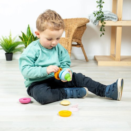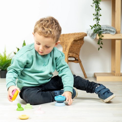 Táto sada Stohovacie jablko a hruška je stohovacia hračka s ovocným nádychom. Každé ovocie sa skladá z piatich farebných dielikov v rôznych veľkostiach, ktoré môžu deti postaviť do svojich tvarov jablka a hrušky. Zároveň tieto voňavé silikónové detské hračky fungujú ako hryzátka, ktoré upokojujú boľavé ďasná. Materiál je odolný, netoxický, ľahko sa čistí a je odolný voči škvrnám. Deti si zábavnou formou počas hrania posilňujú koordináciu ruka-oko, zlepšujú si jemnú a hrubú motoriku. Vyrobené zo 100% silikónu. Čistite teplou vodou a jemným mydlom. Silikón bez plastov je udržateľnou voľbou pre rodičov, ktorí hľadajú ekologické hračky . Hlavné vlastnosti: vyrobené zo 100% silikónu bez plastov1 jablko s 5 stohovacími kusmi1 hruška s 5 stohovacími kusysľahko sa udržuje v čistotemožno umývať v umývačkevhodné pre deti od 1 roka