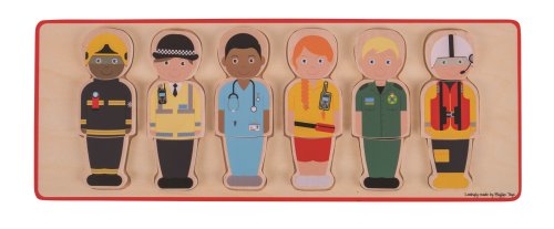Títo záchranári sú Vám pripravení pomôcť! Táto robustná drevená skladačka obsahuje 6 záchranárov vrátane požiarnika, policajného dôstojníka, doktora, záchrannej služby a ďalšie! Každá postava sa skladá z troch drevených kusov, ktoré umožňujú malým deťom kombinovať oblečenie pre každého pracovníka. Pomáha deťom pochopiť rolu ľudí, ktorí im pomáhajú v živote. Skvelý spôsob, ako rozvíjať slovnú zásobu, zladiť zručnosti a sústrediť sa. Podporuje rozvoj jazyka, pretože deti hovoria o každom záchranári a úlohe, ktorú zohrávajú pri pomoci ľuďom. Kompaktné rozmery zaisťujú, že táto hádanka je užitočným kamarátom ako doma, tak aj na cesty. Vyrobené z vysoko kvalitných, zodpovedne dodávaných materiálov. Zodpovedá súčasným európskym bezpečnostným normám. Obsahuje 18 dielikov. Hlavné vlastnosti: obsahuje 18 dielikovveľké dieliky puzzle podporuje komunikačné a motorické zručnosti