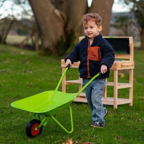 Šikovné dievčatá aj chlapci určite radi pomôžu s rôznymi prácami na záhrade, keď budú mať k dispozícii svoje vlastné záhradné koliesko! Či už budú prevážať kvety, zeminu alebo svoje obľúbené plyšové hračky, veselé zelené koliesko je pripravené vyraziť do akcie. Koliesko je navrhnuté tak, aby vydržalo roky hrania vonku, má robustný gumový bicykel a dve ľahko uchopiteľné rukoväte vhodné pre malé detské ruky. Záhradničenie a starostlivosť o kvety v deťoch podporuje pocit zodpovednosti a prináša im radosť z práce a pomôcť ostatným. Záhradné koliesko je súčasťou série farebných hračiek na záhradu. Je vyrobené z prvotriednych materiálov a farbené netoxickými farbami a lakmi. Spĺňa aktuálne európske bezpečnostné normy. Hlavné vlastnosti: ľahko uchopiteľné rukovätepevné gumové kolesovyrobené z prvotriednych materiálovfarbené netoxickými farbami a lakyvhodné od 3 rokov