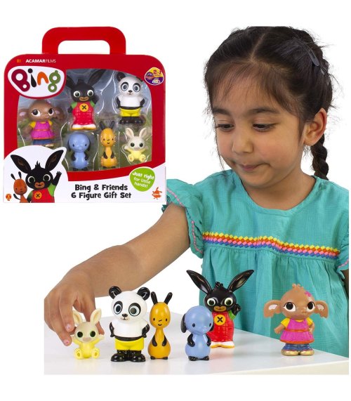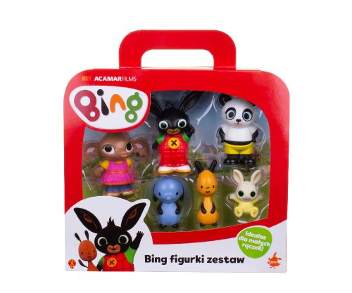 Sada 6 postáv z populárnej rozprávky králiček Bing. Súprava obsahuje všetky obľúbené postavičky zo seriálu: Bing, Flop, Sula, Amma, Pando a Charlie. Vďaka týmto figúrkam z vysoko kvalitného plastu si vaše dieťa bude môcť zahrať svoje obľúbené rozprávkové scény. Vhodné pre deti od 18 mesiacov.