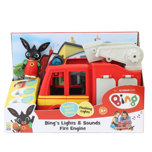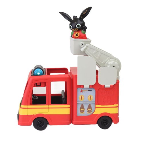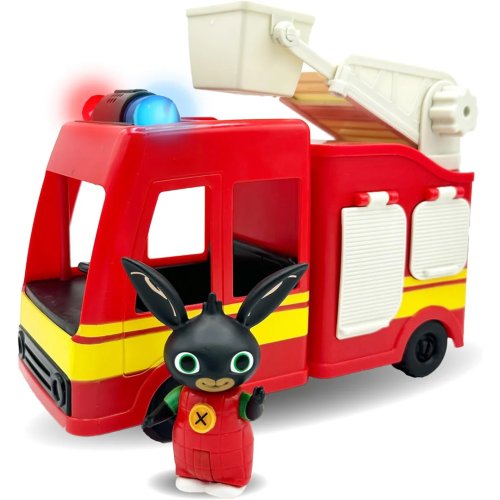 Bingov hasičský automobil vydáva zvuky ako pravé hasičské auto. Rovnako aj blikajúce modré svetlo bude veľmi dobre sprevádzať hru na hasičov vášho malého uličníka. V sade s figúrkou BING.