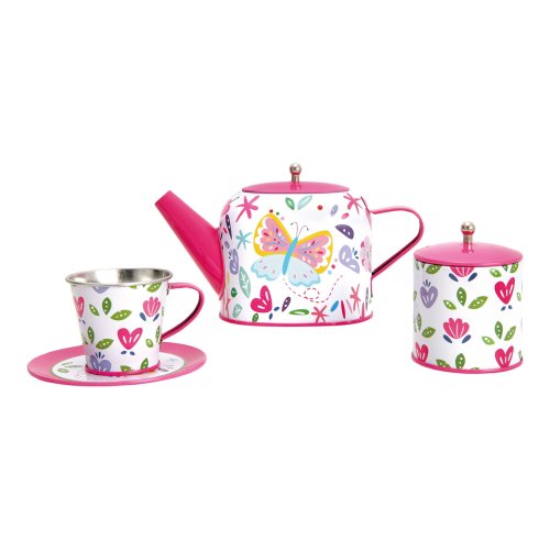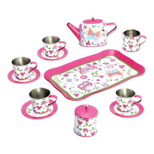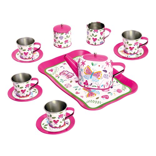 Plyšoví priatelia a bábiky určite neodmietnu pozvanie na čaj podávaný v takom kúzelnom servise! Jeho pomocou môžu deti rozohrať fantastické hry a učiť sa pritom spôsobnému spoločenskému správaniu. Súprava je detailne dekorovaná, vyrobená z odolného ľahkého kovu. Hlavné vlastnosti: servis pre 4 osoby, 14 dielov celkom odolné prevedenie