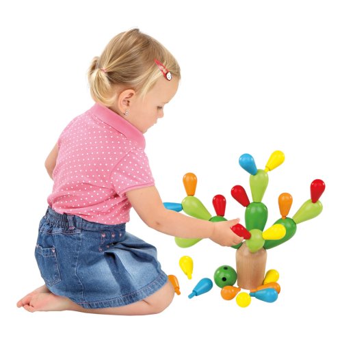 Skladaním kaktusových výhonkov môže dieťa rozvíjať sústredenie a motorické aj poznávacie schopnosti. Hračka je vyrobená z tvrdého masívneho dreva. Veľkosťou a hladkými oblými povrchmi jednotlivých dielikov je prispôsobená malým detským rúčkam, vďaka čomu sa ľahko skladá. Je vhodná aj ako spoločenská zábava do detských kútikov, škôlok a škôl. Hlavné vlastnosti: základňa a 27 dielov na skladanie vhodné na samostatné aj spoločenské hrerobustné a odolné prevedenie z masívneho dreva