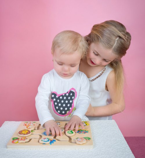 Ako vyzerá žirafa a akú hlavu má lev? Pre šikovné deti bude hračkou priradiť k sebe správne celé zvieratko. Hračka je odolná, vyrobená zo silnej preglejky. Hlavné vlastnosti: odolné drevené prevedenie