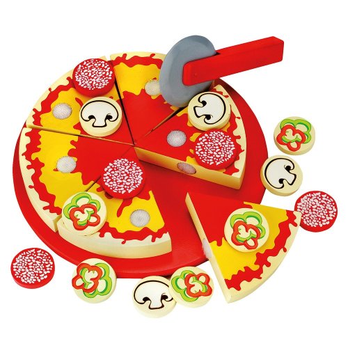 Pizza na krájanie patrí medzi obľúbené hračky malých kuchárov aj jedákov. Jednotlivé diely sú spojené suchým zipsom a na suchý zips sú aj jednotlivé ingrediencie, ktoré je možné kombinovať podľa fantázie. Hlavné vlastnosti: podnos, 6 dielov korpusu a 24 dielov prísad