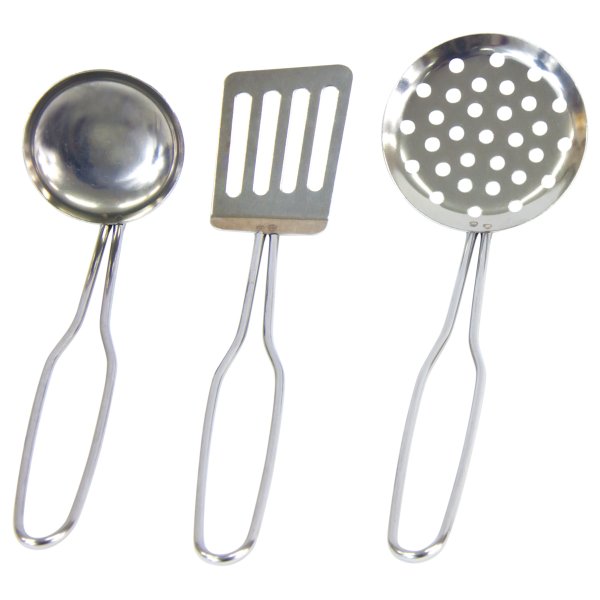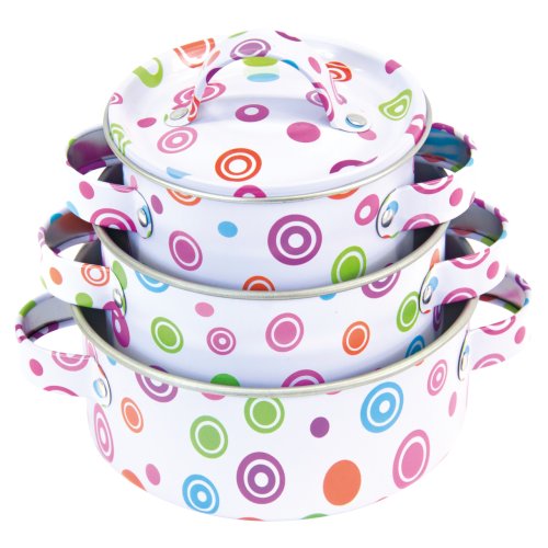 Sada kuchynského riadu a náčinia pre dievčatká, k hre na gazdinky. Obsahuje hrnce s pokrievkami, panvicu, drobné kuchynské náčinie aj chňapku. Vhodné k hrám vo vnútri aj vonku. Hlavné vlastnosti:3 hrnce s pokrievkami, panvica, naberačka, sitko, obracačka a chňapka