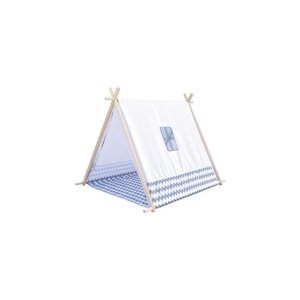 Detský stan na hranie. Obsahuje vzdušné okienko, otvorený záves dverí a podlahu. Plachta domčeka je vyrobená zo 100% polyesteru a konštrukcia z dreva. Stan prináša do života detí veľa zábavy, skúmania, vytvárania skrýš vo vlastnej "jaskyni". Výrobok môže byť umiestnený ako v detskej izbe, tak na záhrade a ponúka dostatok priestoru. Demontujte a upracte, aby ste ušetrili miesto do niekoľkých minút. Stan domček je skvelý darček pre malých dobrodruhov. Vhodné pre deti od 3 rokov. Varovanie! Použitie deťmi do 3 rokov iba pod dohľadom dospelej osoby. Hlavné vlastnosti: Drevený základ s textilným prikrývkou je jednoduché zložiť Stan môže byť umiestnený ako v detskej izbe, tak na záhrade