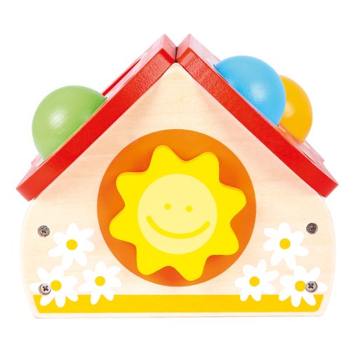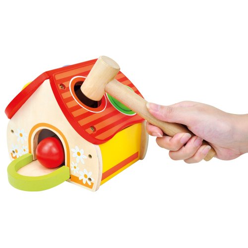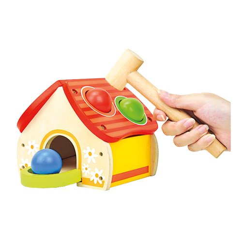 Pestrofarebná zábava, zatĺkačka ako domček s loptičkami. Loptičky poslúži ako univerzálna hračka a domček sa tiež nestratí pri ďalších hrách, najmä s figúrkami. Zatĺkačka rozvíja koordináciu zraku a pohybu. Hračka je robustná, vyrobená zo silnej preglejky a masívneho dreva. Hlavné vlastnosti: domček, kladivko a 4 rôznofarebné loptičky rozvíja motorikurobustné drevené prevedenie