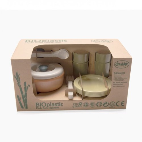 • jedálenská sada vyrobená z bioplastu - z cukrovej trstiny