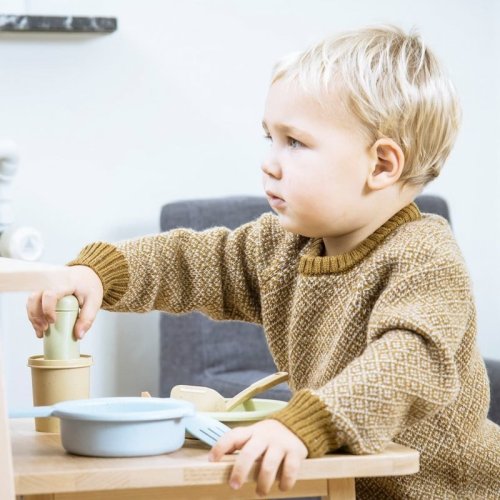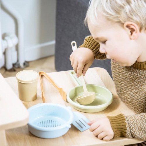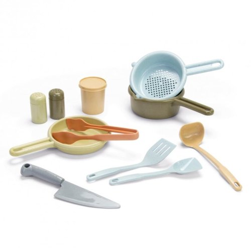 Sada kuchynského náčinia v krásnych trendy farbách, vyrobená z bioplastu.