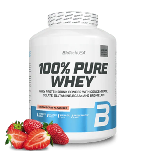 100% Pure Whey je vysoko kvalitný proteínový prášok s vysokou biologickou hodnotou. Je kombináciou srvátkového koncentrátu, srvátkového izolátu a pridaných aminokyselín (L-glutamín, L-arginín a BCAA). Vďaka nízkemu obsahu sacharidov a tukov je vhodný aj v diétnej fáze. Neobsahuje lepok, palmový olej, ani pridaný cukor. K dostaniu je v pestrej škále príchutí. Prednosti: