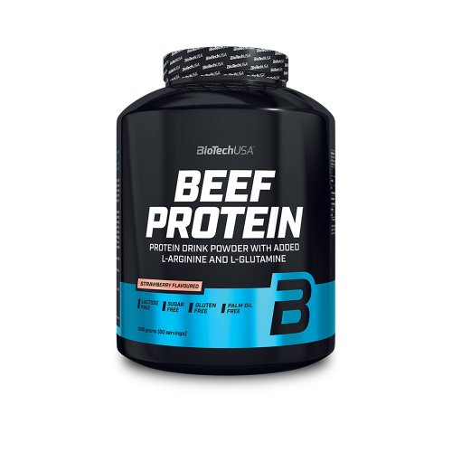 Beef Protein od BioTech je hovädzí proteín bez cukru, laktózy a lepku. Základ proteínu tvorí hydrolyzovaná peptidová forma hovädzích bielkovín, ktorá je obohatená o L-glutamín a L-arginín. Hovädzí proteín je zdrojom kvalitných bielkovín, ktoré sú ľahšie stráviteľné ako nízkotučné hovädzie mäso (napr. steak), má skvelú vstrebateľnosť a ako všetky živočíšne bielkoviny aj vynikajúcu biologickú hodnotu. Beef Protein je bez pridaného kreatínu a hoci má nízky obsah tuku, obsahuje kokosový tuk, ktorý je vynikajúcim zdrojom MCT (triglyceridy so stredným reťazcom).