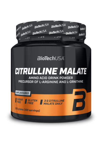 100% čistá aminokyselina L-citrulín malát v prášku. L-citrulín je neesenciálna (podmienečne esenciálna) aminokyselina, mikroživina, ktorú telo nedokáže produkovať v dostatočnom množstve, typicky pri väčšej záťaži, a preto je na mieste doplnenia vo forme doplnkov stravy. Pre športovcov je dôležitý, pretože pri užití pred fyzickým výkonom podporuje vlastnú tvorbu oxidu dusnatého, ktorý pomáha s prekrvením namáhaných svalov. Citrulín sa vo veľkom množstve vyskytuje napríklad vo vodnom melóne. Synergickou kombináciou aminokyseliny L-citrulín a kyseliny jablčnej je L-citrulín malát. Kyselina jablčná (malát) je organická kyselina, ktorá sa vyskytuje v prírode (napríklad v jablku). Aminokyselina L-citrulín je to, z čoho sa skladajú aminokyseliny L-arginín a L-ornitín. Ide o formulu veľmi obľúbenú medzi športovcami. Odporúčané dávkovanie: